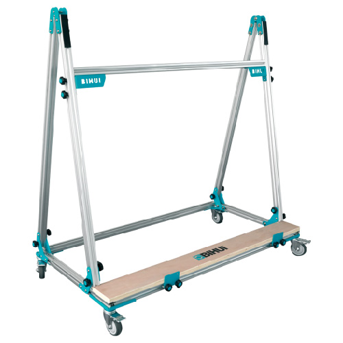 Les roulettes en caoutchouc assurent un déplacement souple et sécurisé sur chantier, tandis que le système de verrouillage permet de bloquer le chevalet pendant les opérations d’encollage pour un travail précis et stable.