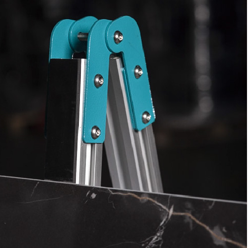 Pensé pour les professionnels, ce chevalet facilite le double encollage des plaques en grès cérame et matériaux similaires, tout en assurant une excellente stabilité pendant le travail.