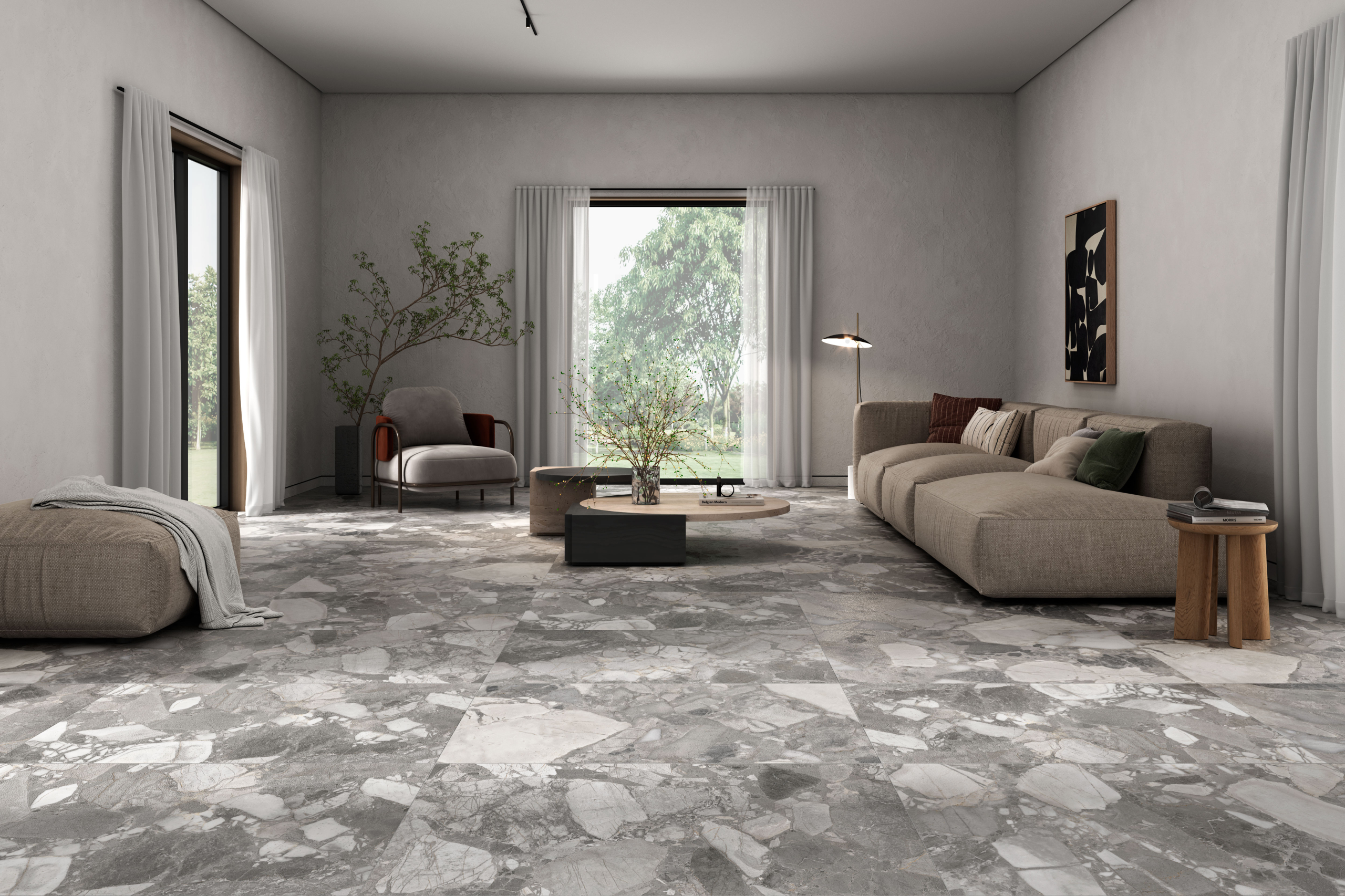 La finition mate rectifiée atténue les reflets de lumière et apporte une sensation de douceur et de sérénité aux espaces intérieurs. Elle met en valeur la matière tout en offrant un confort visuel optimal, adapté aussi bien aux ambiances résidentielles qu’aux environnements professionnels.