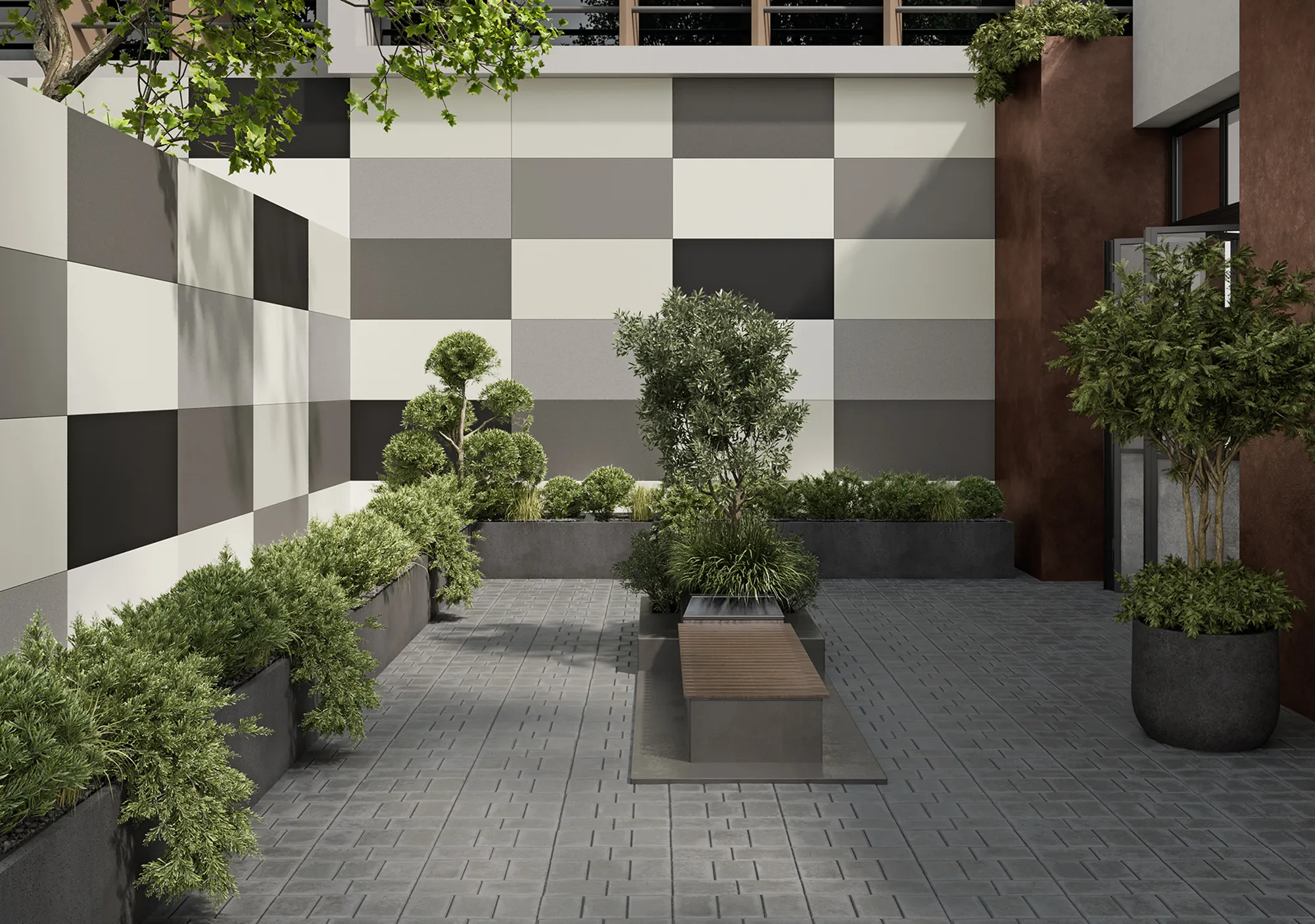 Matériau : grès cérame — excellente résistance mécanique et stabilité dans le temps.