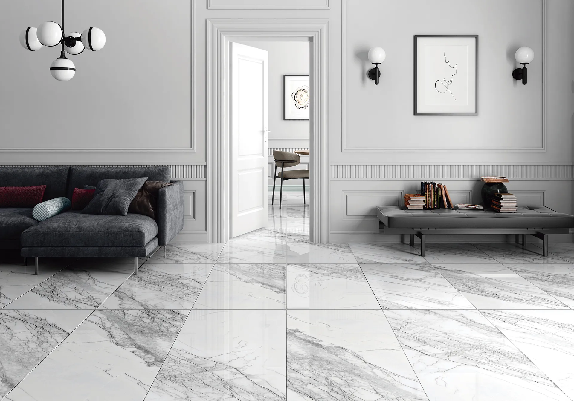 Les formats proposés offrent une grande liberté d’aménagement, permettant aussi bien des compositions modernes que plus classiques. La finition polie accentue la luminosité et agrandit visuellement les espaces, faisant de Vega White un choix sûr pour les projets contemporains.